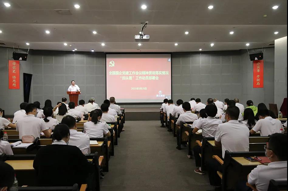 王志斌强调,一是要加强组织领导,统筹协调推进。制定工作方案,成立工作领导小组,党委有关职能部门发挥牵头抓总、统筹协调作用,各部门、各单位通力协作,按时间节点抓好各项工作落实。二是深入学习领会,把握精神实质。结合学习习近平总书记“七一”重要讲话精神、习近平总书记关于国有企业改革发展和党的建设重要论述深入开展学习。三是加强对标检视,全面查找问题。围绕坚持党对国有企业的全面领导情况等七个方面对标检视,及时查漏补缺、对标提升。四是坚持务实作风,提升工作成效。以“回头看”为契机,统筹推进学习贯彻习近平总书记“七一”重要讲话精神、纪律教育学习月活动、市委巡视巡察整改“回头看”、“五强五化”示范党组织创建等党建重点工作,以高质量党建引领企业高质量发展。