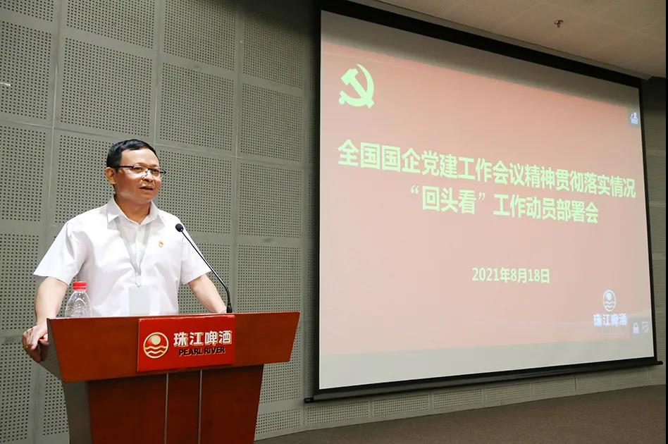 2018年8月18日,珠啤股份党委召开全国国企党建工作会议精神贯彻落实情况“回头看”工作动员部署会,重温全国国有企业党的建设工作会议精神,对“回头看”工作进行再部署再动员,切实抓好贯彻落实。珠啤股份党委书记、董事长王志斌主持会议并讲话。会议以远程视频方式开至各下属企业,中层以上干部,党委、纪委职能部门负责人,各党组织负责人、党员代表等360多人通过现场或视频会议参加学习。